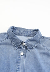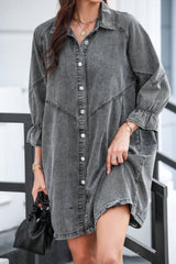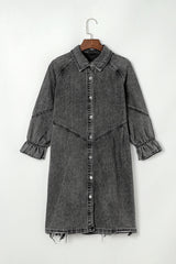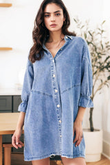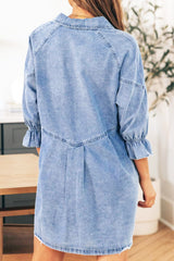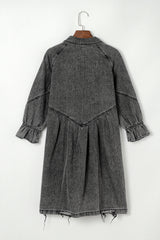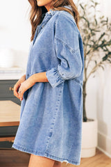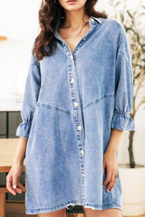 Baylor Distressed Collared Neck Flounce Sleeve Denim Dress | URBAN ECHO SHOP