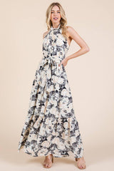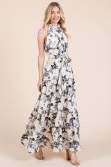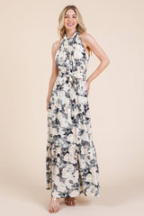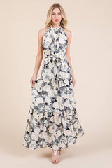 Our Monaco Breeze Floral Halter Neck with Tie-Waist Tiered Maxi Dress has Shirred Detail with Lining. This Dress is Simply So Exquisite, Flowy and Fun, Perfect for Every Occasion.