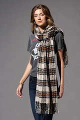 The Kylie Lee Plaid Scarf in Ivory is Beautifully Soft with a Comfy and Casual Appeal