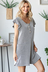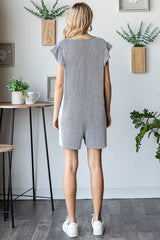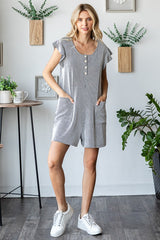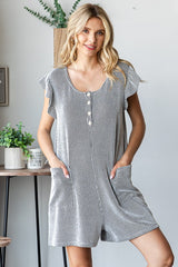 Our Rayna Button Front Romper is Ribbed Featuring a Button Front Detail, Scoop Neckline, Ruffle Sleeves, and Two Front Patch Pockets - So Super Cute for Every Summer Occasion