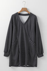 Striped V-Neck Long Sleeve Mini Dress | URBAN ECHO SHOP