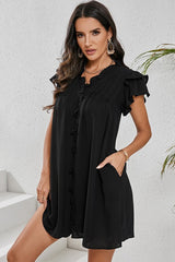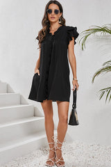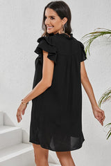 Blakley Ruffle Sleeve V Neck Frilled Shift Dress | URBAN ECHO SHOP