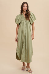 Annie Wear Smocked Puff Sleeve Midi Dress in Sage | URBAN ECHO SHOP