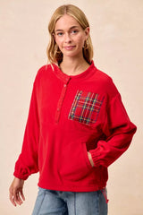 Christmas Theme Fleece Buttoned Top with Pockets | URBAN ECHO SHOP