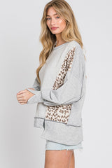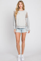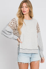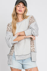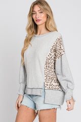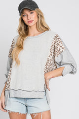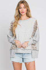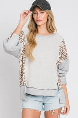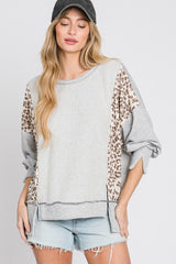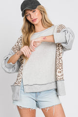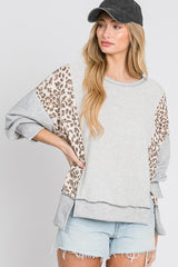 The Tawny Kay Leopard Top in Grey is Perfectly Cozy and Adorably Chic with an Oversized Fit and Side Slits - A Seasonal Must-Have