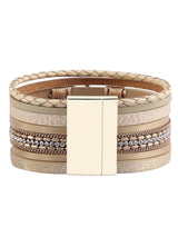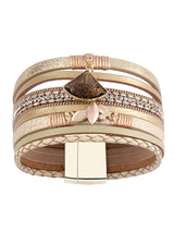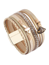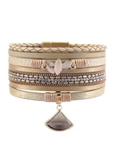 The Gold Country Layered Bracelet will Add Glam to Any Outfit – Day or Night. Layered with PU Leather and Gems that Shimmer Ever so Slightly with a Beautiful Gemstone Charm