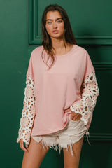 French Terry Crochet Sleeve Top in Pink | URBAN ECHO SHOP