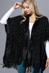 This Beautiful, High Quality Knit Cozy Ruana Has Tassels Along the Bottom Edge and Will Keep You Stylishly Warm All Season Long