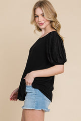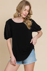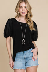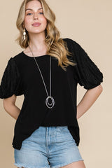 Brienna Top with Contrast Sleeves in Black | URBAN ECHO SHOP