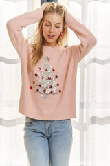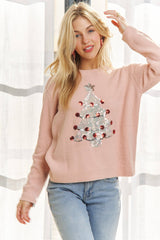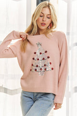 So cute! So cozy! Embrace the holiday spirit with our Merry Girl ultra-soft, round-neck sweater. The highlight is a beautifully detailed Christmas tree design, embellished with radiant sequins that offer a touch of glamour. A glittering star crowns the tree, making this top a charming and exceptionally comfortable choice for seasonal celebrations.