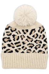 Leopard Pom Pom Beanie Hat | URBAN ECHO SHOP